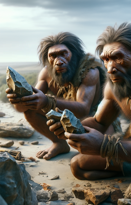 Doch die Wogen der Zeit trugen die Faustkeile weit über die Grenzen Afrikas hinaus. Über die Weiten Eurasiens verbreiteten sie sich, und obwohl ihr Echo erst rund 600.000 Jahre später erklang, war ihr Einfluss unverkennbar. Doch die Faustkeile sind nicht die einzigen Protagonisten dieser epischen Erzählung. Im Acheuléen tanzen weitere Steinwerkzeuge auf der Bühne der Geschichte. In Afrika tragen die mächtigen Hackmesser und die kunstvoll gemeißelten Abschläge zur Legende bei, während in den Hallen des europäischen Acheuléen Schaber und kleine Faustkeile, auch bekannt als Fäustel, ihre Meisterschaft demonstrieren. Und so bleibt der Name dieser Ära, Saint-Acheul, einst ein unscheinbares Dorf in Nordfrankreich, doch in seinen Tiefen verborgen liegt der Schlüssel zu einer vergessenen Welt. Dort, wo die Faustkeile gefunden wurden, erhebt sich die Legende des Acheuléen aus den Schatten der Vergangenheit, um das Licht der Gegenwart zu erleuchten.