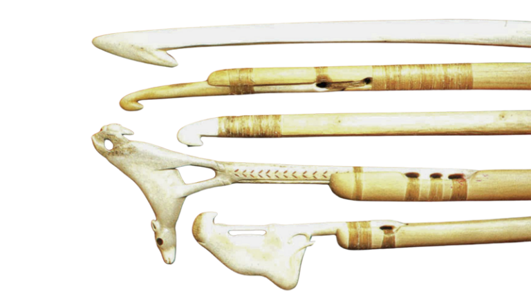 Magdalénien III – Speerschleudern, durchbohrte Stäbe, Speerspitzen, halbgerundete Stäbchen.