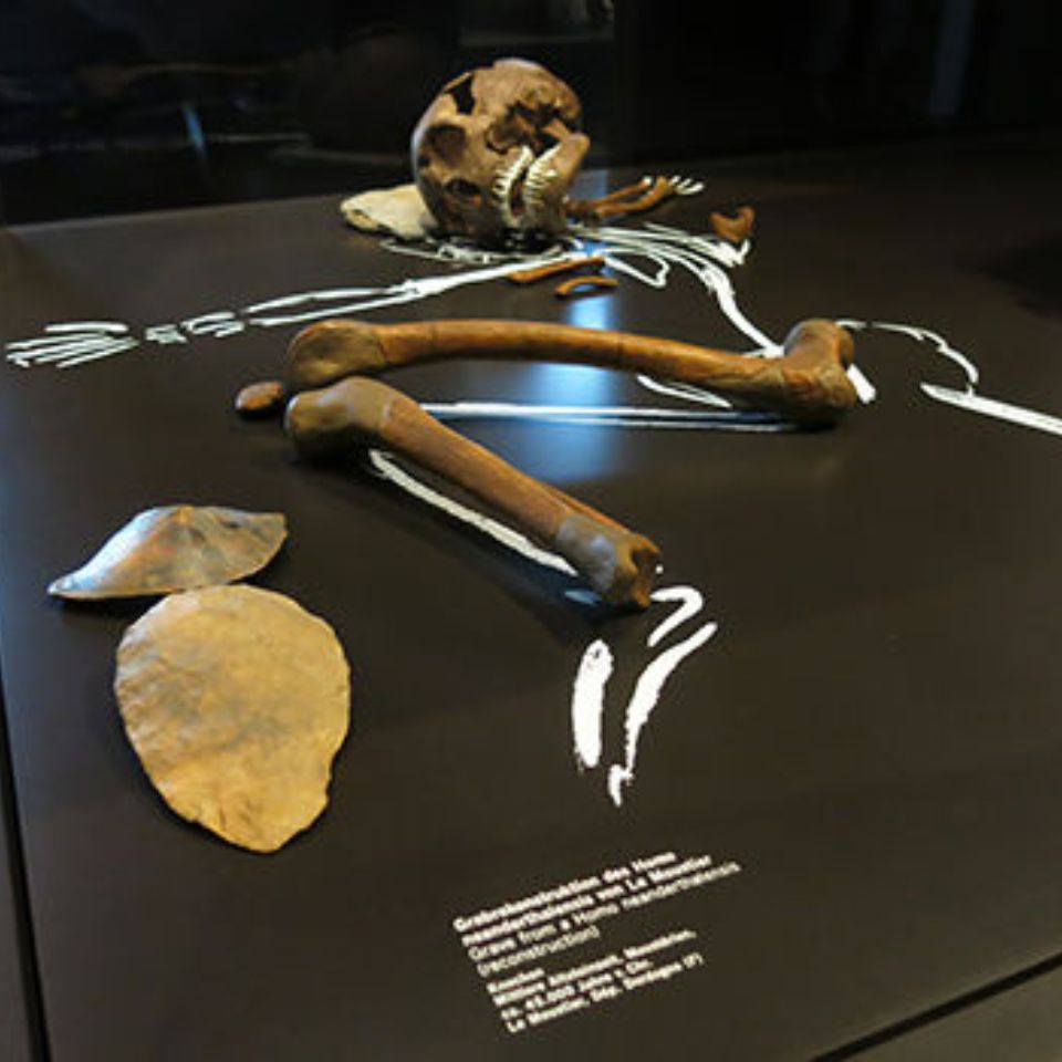 - Bestattungen: Bereits vor 100.000 Jahren gab es intentionelle Bestattungen. Mehrere Funde von Neandertalskeletten in Grabstätten, teilweise versehen mit rituellen Grabbeigaben wie Tierhörnern, legen nahe, dass sie sich mit dem Tod auseinandersetzten und spirituelle Vorstellungen hatten.