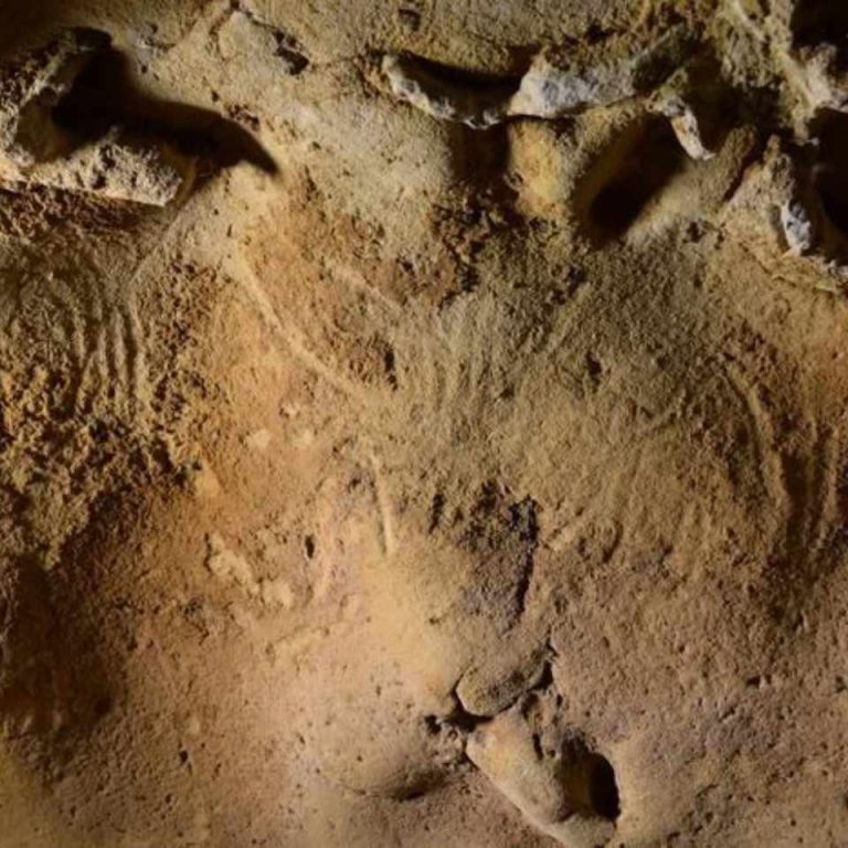 - Kunst & Ästhetik:Älteste bekannte Petroglyphen im anstehenden Gestein (Gibraltar, >39.000 BP); Ritzzeichnungen (z.B. „Maske von La Roche-Cotard“, ~75.000 BP)
