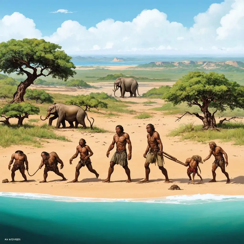 Vor etwa 60.000 bis 70.000 Jahren begannen kleine Gruppen unserer Vorfahren Afrika zu verlassen. Diese entscheidende Phase der Menschheitsgeschichte ist als die "Out-of-Africa"-Migration bekannt. Angetrieben durch eine Kombination aus Klimaveränderungen, Nahrungssuche und der angeborenen Neugier, wagten sie mutig den Schritt in neue unbekannte Gebiete. Diese Wanderungen waren jedoch nicht einfach. Sie wurden mit rauen Klimabedingungen, unwegsamem Gelände und der Gefahr durch unbekannte Raubtiere konfrontiert. Doch trotz dieser Herausforderungen fanden die frühen Menschen Wege, sich anzupassen und schließlich fast jeden bewohnbaren Kontinent zu erreichen.